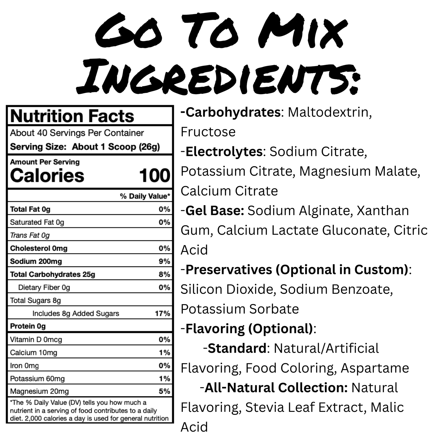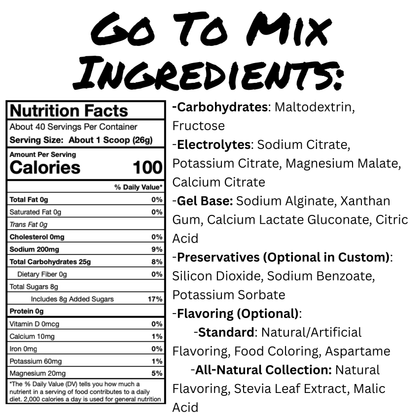 Want to adjust Flavor Strength, Electrolytes, Carb Quantity!? Check out the Custom Mix page to alter it to make a drink mix exactly how you like it!